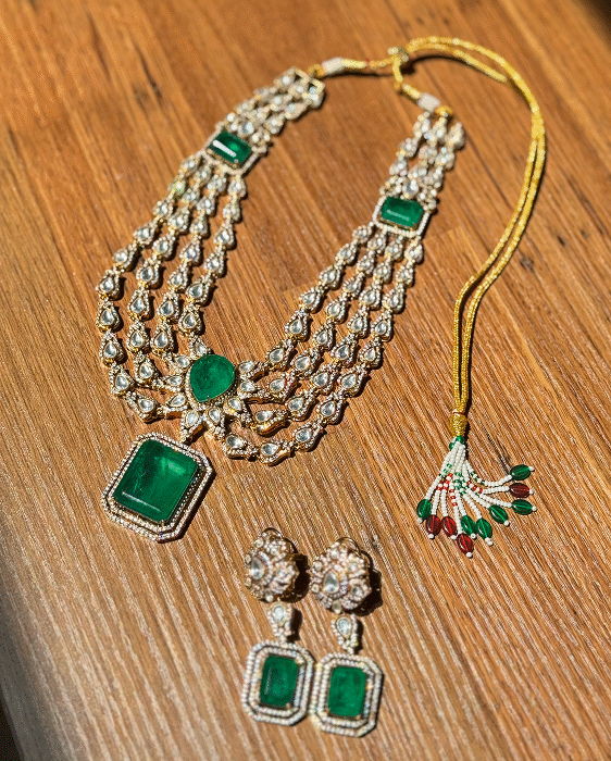 Timeless tradition meets regal charm in the Anaya Polki Haaram Set. Crafted in classic imitation jewelry style, this long necklace features intricately set Polki stones on a rich brass base, radiating old-world elegance. The detailed craftsmanship and antique finish make it perfect for weddings, festive occasions, and grand celebrations. Pair it with ethnic wear for a truly royal statement.