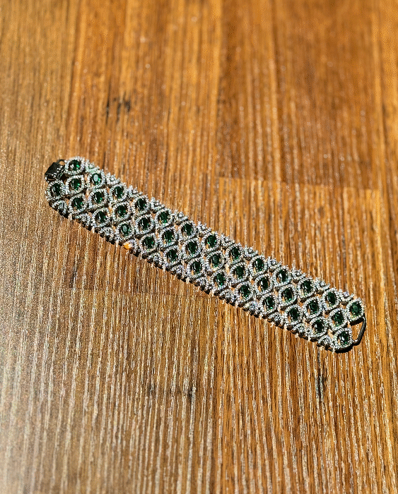 Sparkle with subtle luxury in the Elina Bracelet, inspired by the brilliance of Swarovski designs. This imitation jewelry piece features dazzling green stones set on a sleek brass base, combining modern elegance with timeless appeal. Perfect for adding a pop of color and sparkle to both casual and festive looks.